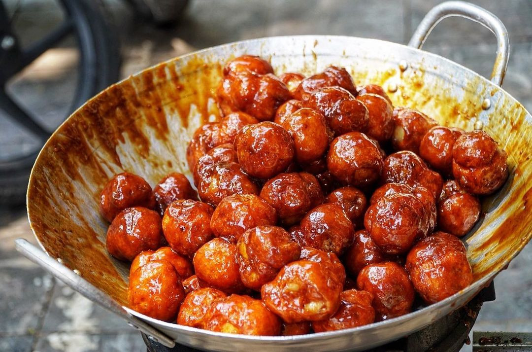 Đặc biệt, trong ngõ 242, đường Lạc Long Quân, có một quán ăn nhỏ, lúc nào cũng đông khách kéo tới thưởng thức bánh rán thơm ngon ăn kèm với tương ớt chua ngọt, cùng với đu đủ và cà rốt ngâm.