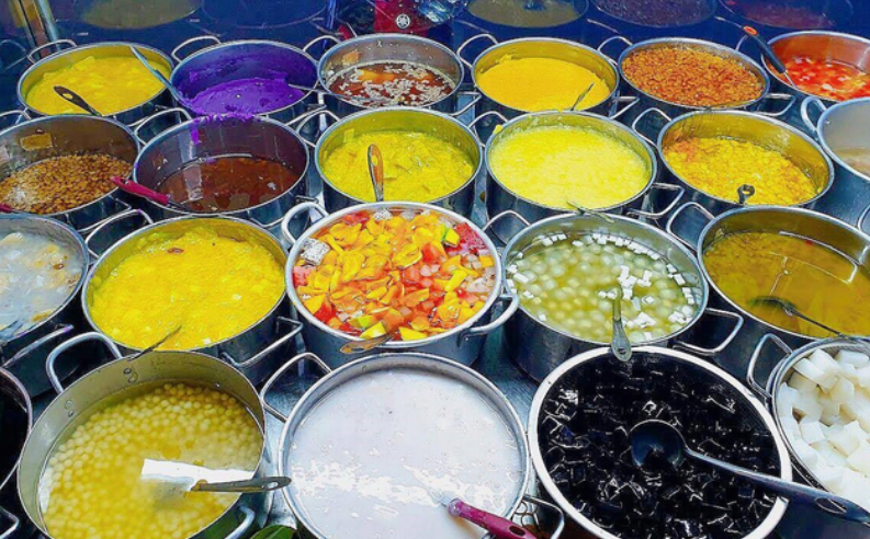 Chợ Cồn có bán rất nhiều các loại chè ngon và bổ dưỡng như chè thập cẩm, chè thái, chè đậu xanh, chè bưởi,…Mỗi loại có một hương vị đặc trưng ăn kèm nước cốt dừa béo ngậy.