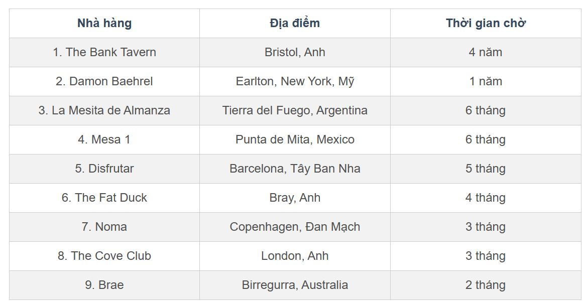 30/07/2023 14:10Những nhà hàng khó đặt chỗ nhất thế giới, có nơi danh sách chờ lên tới 4 năm