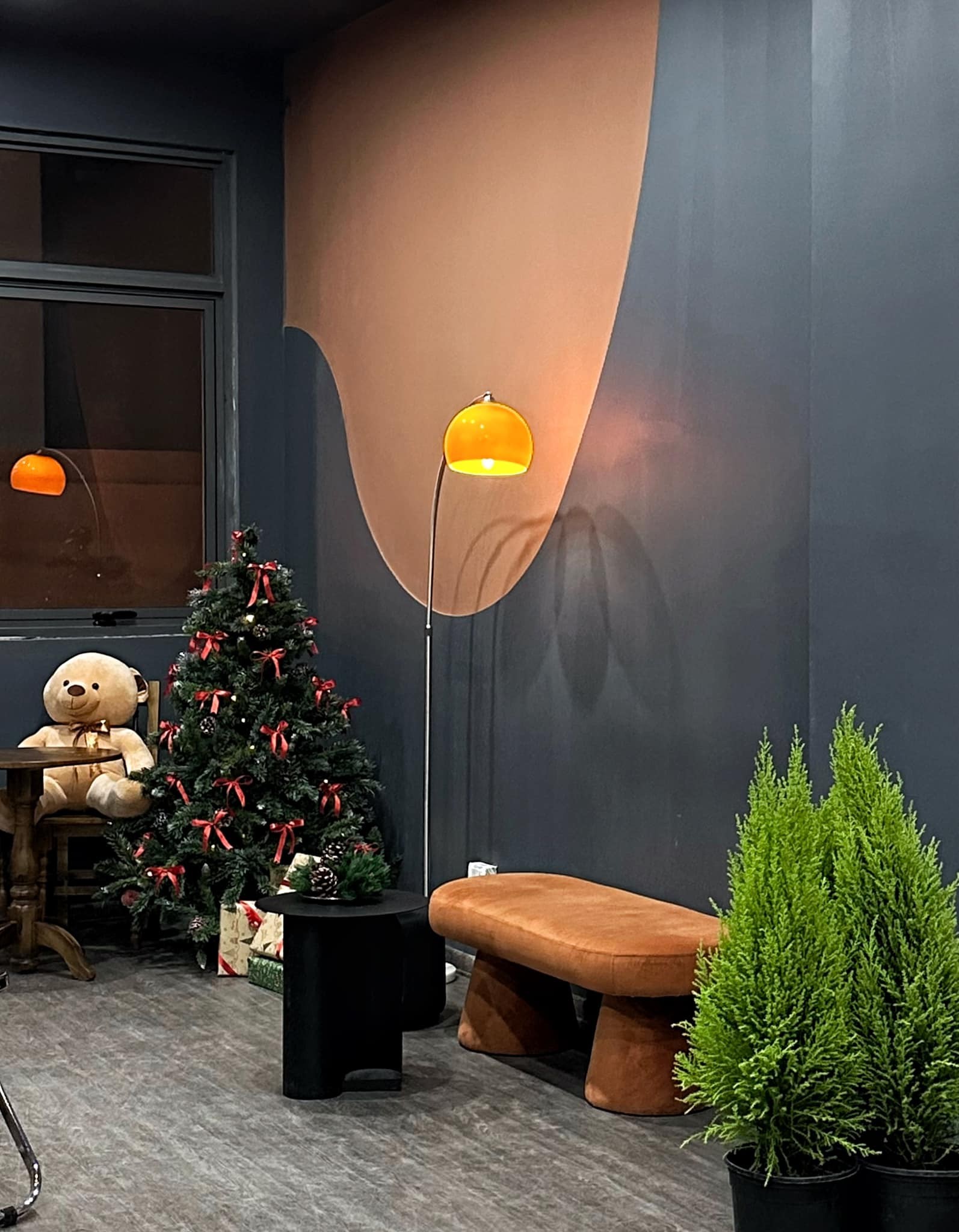 Đặt chân vào quán, bạn sẽ có cảm giác như lạc vào một rừng thông với rất nhiều cây thông Noel được bày trí gần nhau. Ngoài các góc trang trí Giáng sinh, chỗ làm việc thường ngày khá thoải mái, mỗi bàn đều có ổ điện riêng để bạn có thể “cắm rễ” tại quán từ sáng tới chiều.