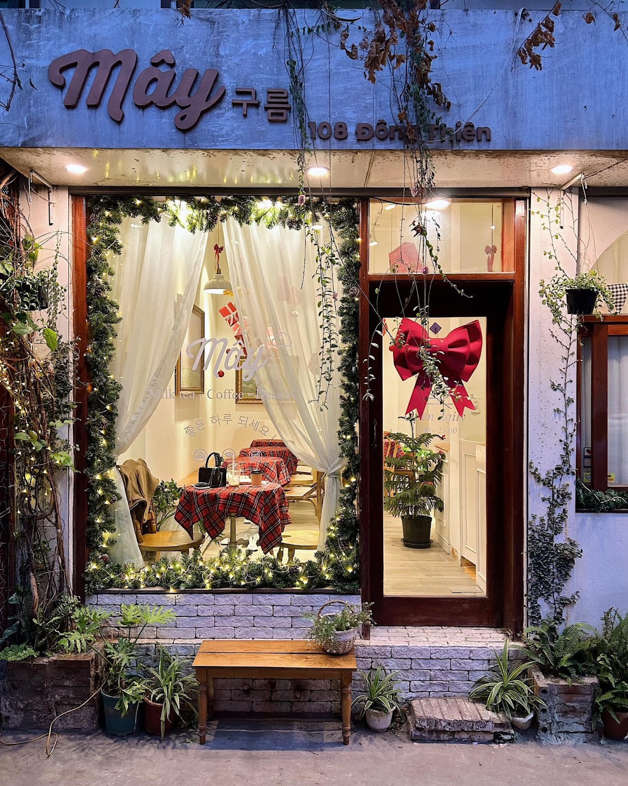 Nét đặc biệt của Mây chính là chiếc sân thượng “tắc kè hoa” nằm trên tầng 6. Chỉ vài tháng trước, Mây vẫn đang còn là quán cà phê vừa mang đậm vibe Hàn Quốc siêu lãng mạn, vừa giống như một khu vườn Đà Lạt thu nhỏ đầy tươi mới. Những ngày Giáng sinh cận kề, Mây lại khoác lên mình những sắc màu ấm cúng, hoài niệm, ngập tràn không khí Noel trên một góc phố nhỏ tại Paris.