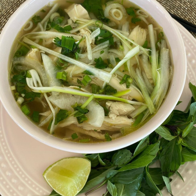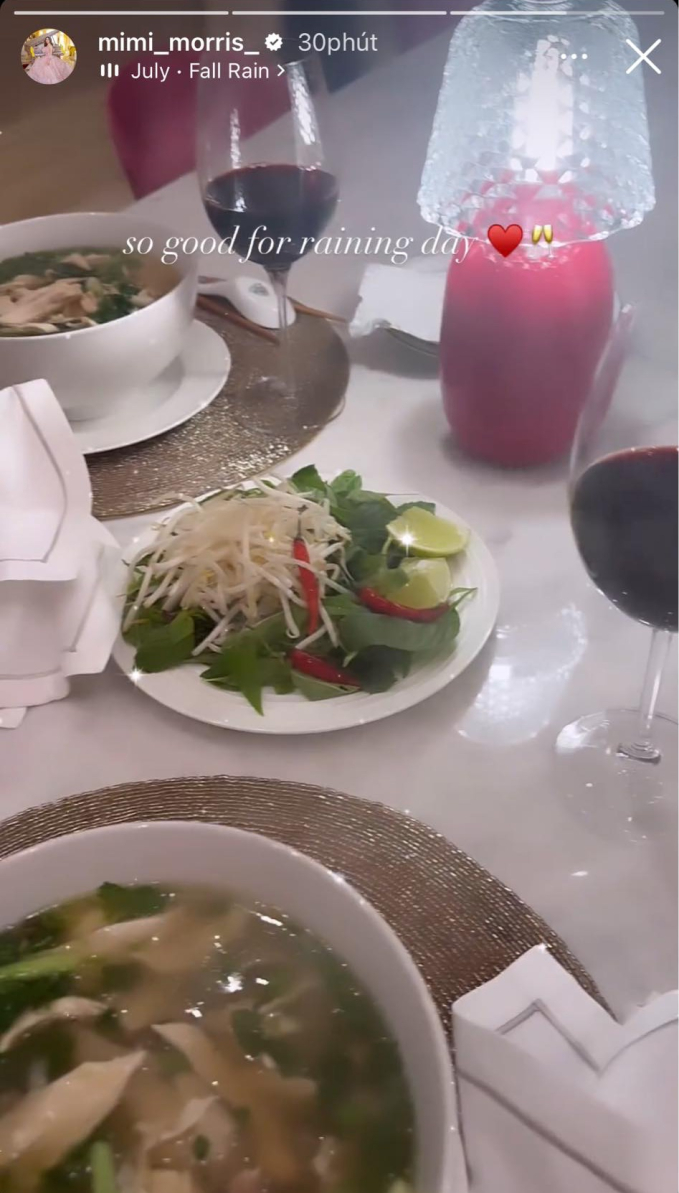 Mới đây, một vài người bạn của nữ tỷ phú đã đăng ảnh những món ăn do cô tự làm để đãi bạn bè như phở gà, smoothie. Nhìn qua màn ảnh, bát phở gà của Mimi Morris cực đầy đặn và ngon lành, có đầy đủ rau thơm Việt Nam như hành, rau mùi.