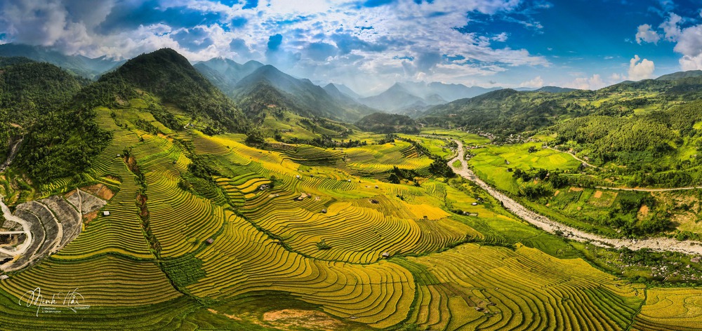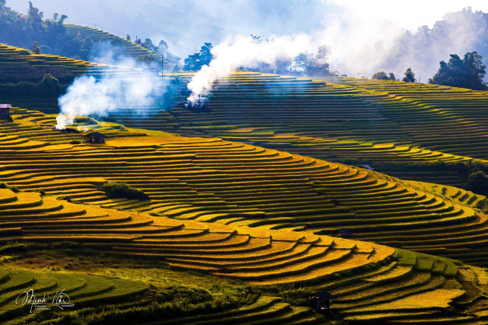 Tầng tầng lớp lớp lúa chín vàng tạo nên cảnh tượng kỳ ảo (Ảnh Nguyễn Minh Hải)