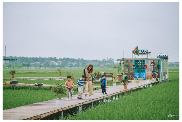 Du khách sau khi gửi xe sẽ cần đi bộ một đoạn ngắn đường đất để tới khu vực ruộng lúa nơi quán cà phê được xây dựng. Tiếp đó rảo bước trên con đường gỗ đã được trải sẵn. Gần như toàn bộ khu vực ngồi của quán cà phê ruộng là không gian mở, trải dọc theo chiều dài của khu vực đường gỗ, gần gũi với cánh đồng ngay cạnh.