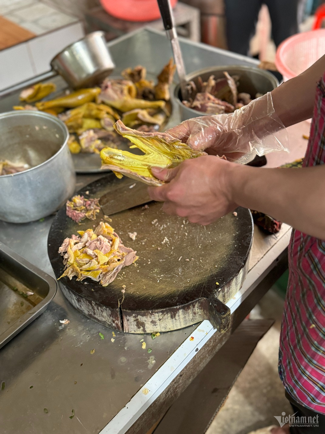 Thịt trong phở Tráng Kìm sẽ là thịt gà được nuôi thả tự nhiên. Gà được người dân bản nuôi, quanh năm ăn ngô, chạy đồi, mình nhỏ nhưng thịt chắc nịch Từng miếng thịt gà luộc chín tới, ngọt, giòn được chủ quản lọc nhanh thoăn thoắt để phục vụ du khách.