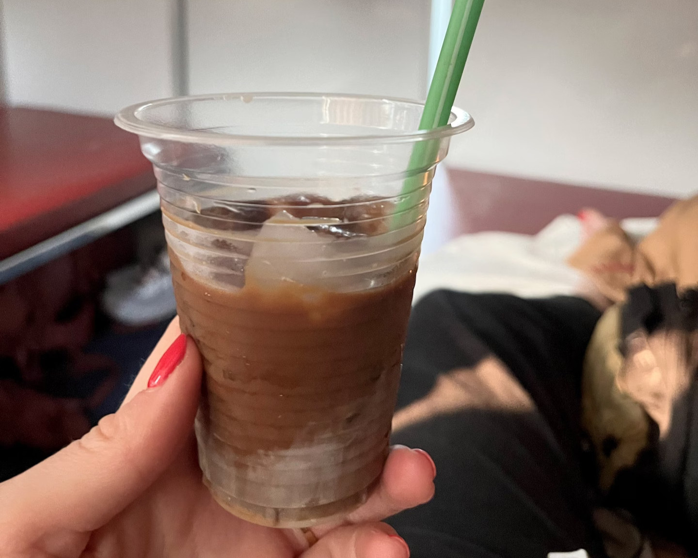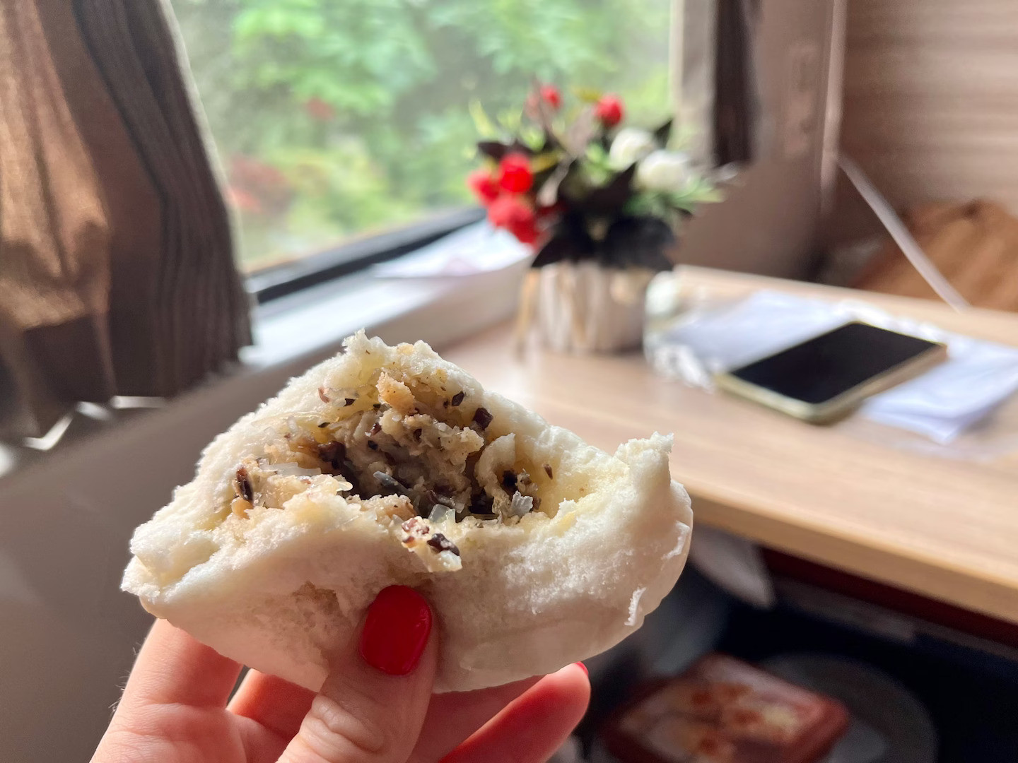 Trong suốt hành trình, nhân viên với xe đẩy hàng thường xuyên di chuyển đến các khoang để bán cà phê, đồ ăn nhẹ và các phần ăn như cơm đùi, súp và cháo thịt ăn sáng cho khách. Tàu cũng thỉnh thoảng dừng để khách xuống tàu và mua đồ ăn nhẹ từ các quán hàng ở ga.