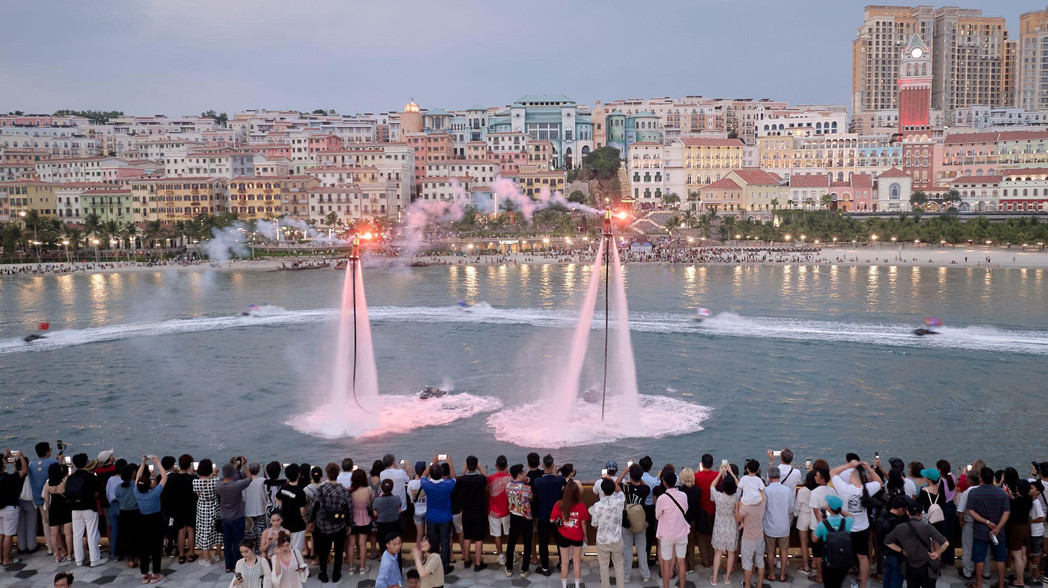 Và mới đây thôi, cuối tháng 2/2024, show trình diễn nghệ thuật thể thao mạo hiểm trên biển Sunset Jetski Show: Vòng xoáy tình yêu (Love Hurricane) tiếp tục được trình diễn tại thị trấn Hoàng Hôn, với sự tham gia của 18 vận động viên quốc tế với 2 bộ môn Jetski (motor nước) và Flyboard (ván đứng phản lực nước). Sân khấu là mặt nước biển, khán đài xem show Jetski là cây Cầu Hôn đẹp như một tác phẩm nghệ thuật điêu khắc, đó là một show nghệ thuật đặc biệt mà du khách tới Phú Quốc không khỏi thán phục.