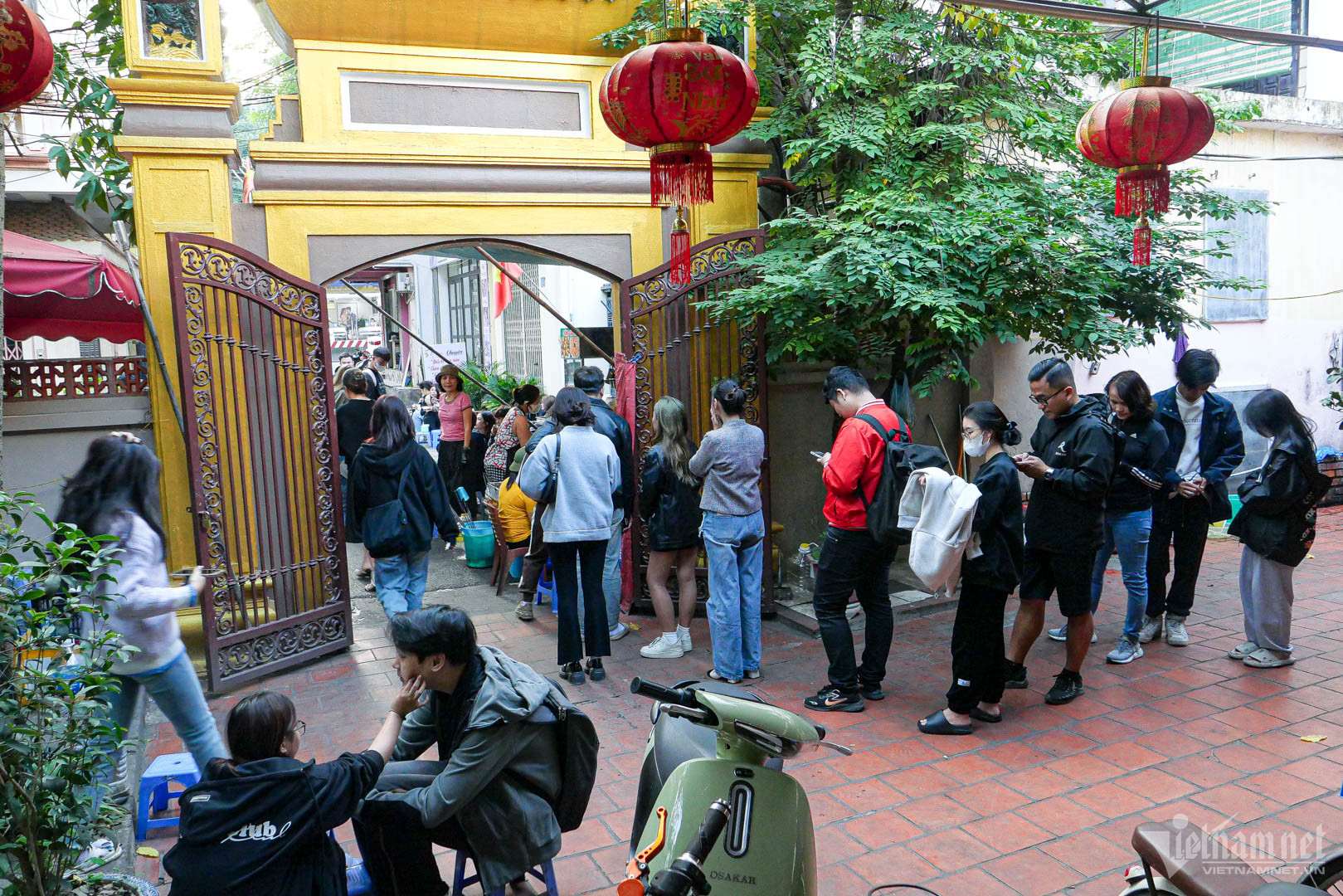 Khách ở đây đủ mọi lứa tuổi từ người già tới trẻ nhỏ, nhưng nhiều nhất là các bạn trẻ. Nhiều người tìm tới vì tò mò trước cảnh khách xếp hàng dài chờ mua bánh rán.
