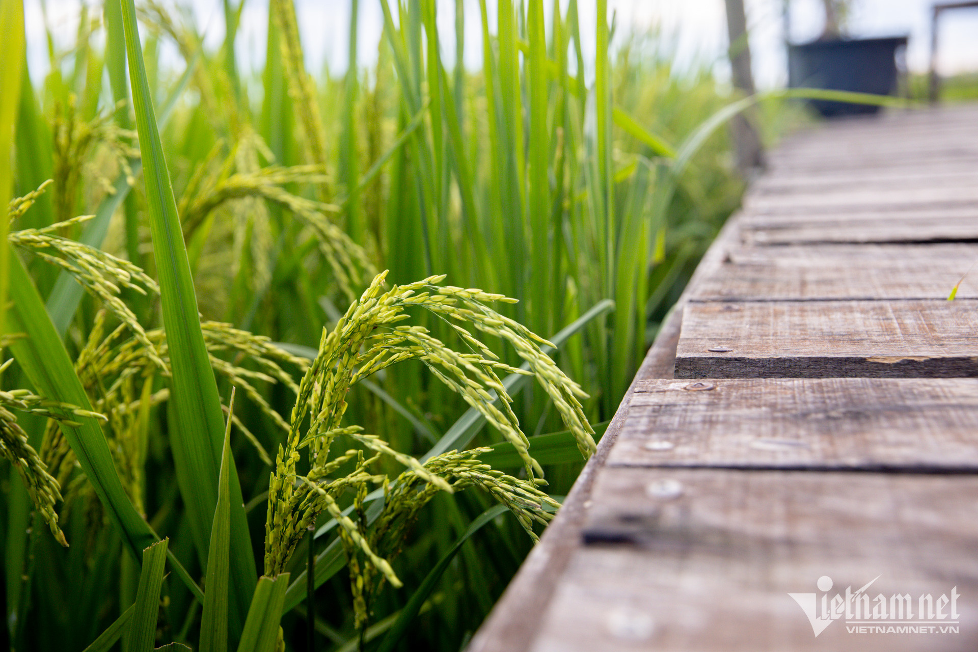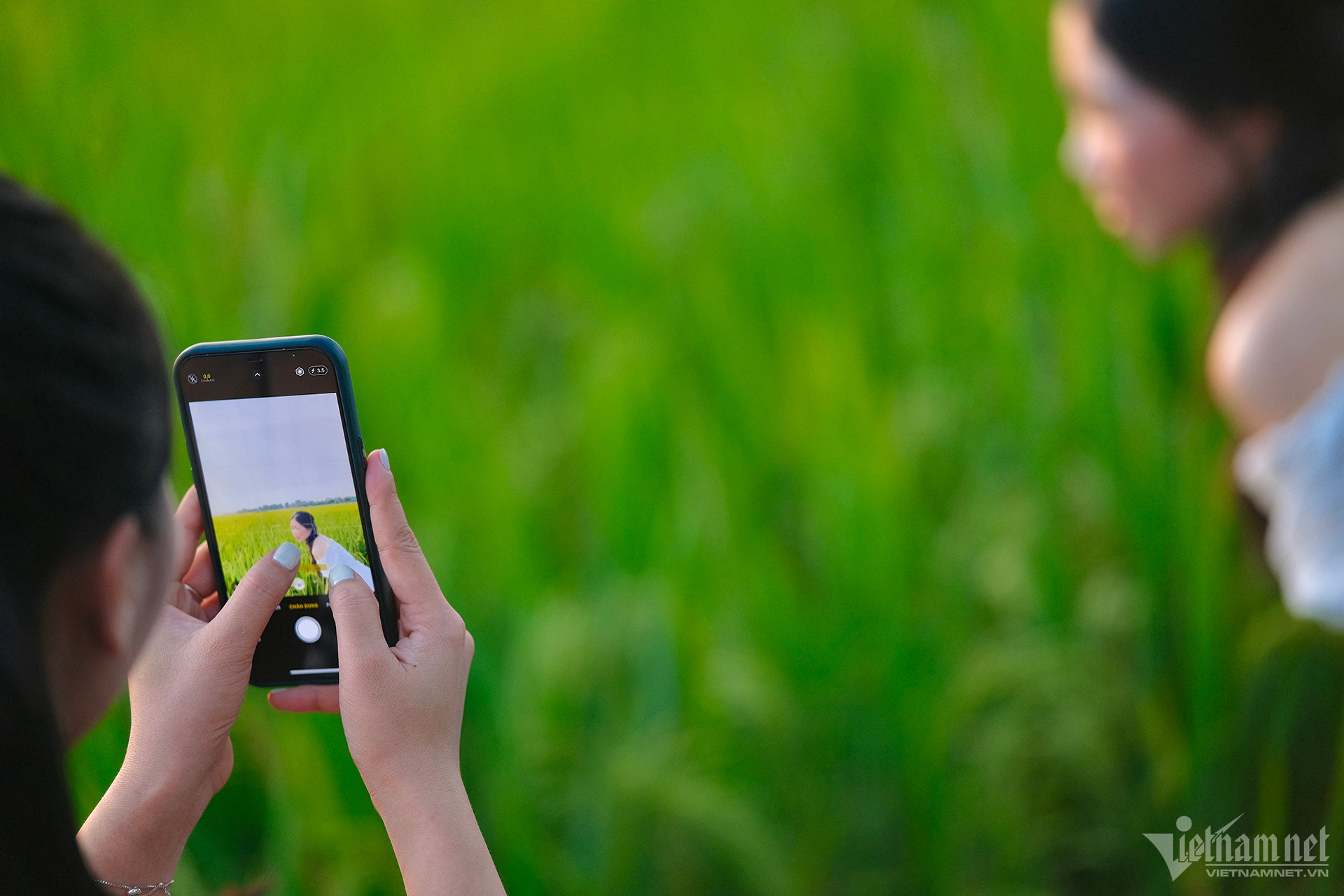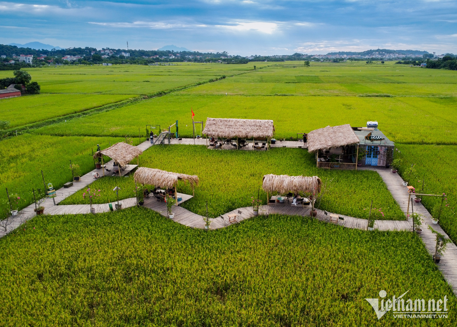 Vào mùa lúa chín, một quán cà phê giữa cánh đồng ở ngoại thành Hà Nội thu hút rất đông bạn trẻ hiếu kỳ đến check-in, chụp ảnh.