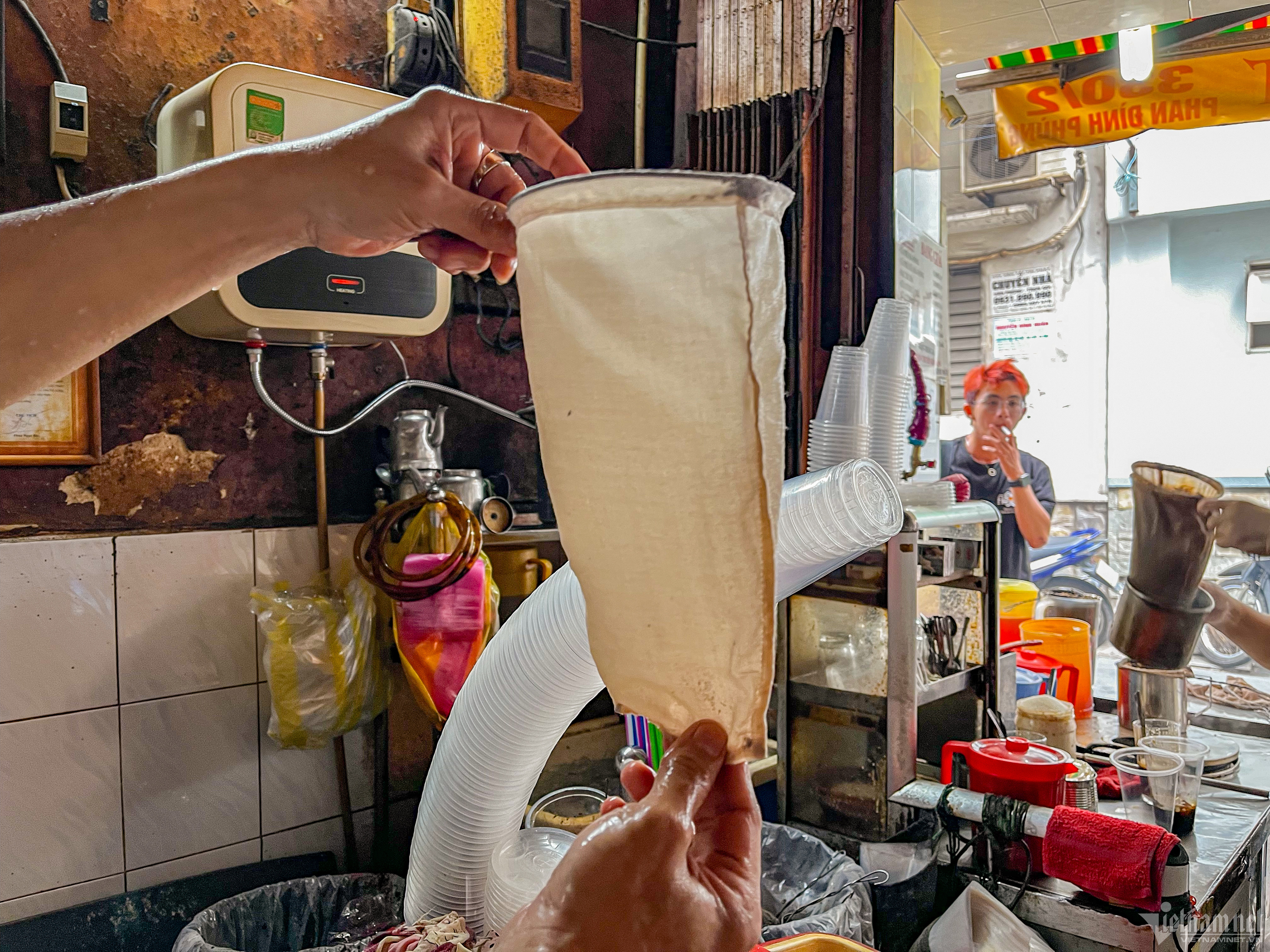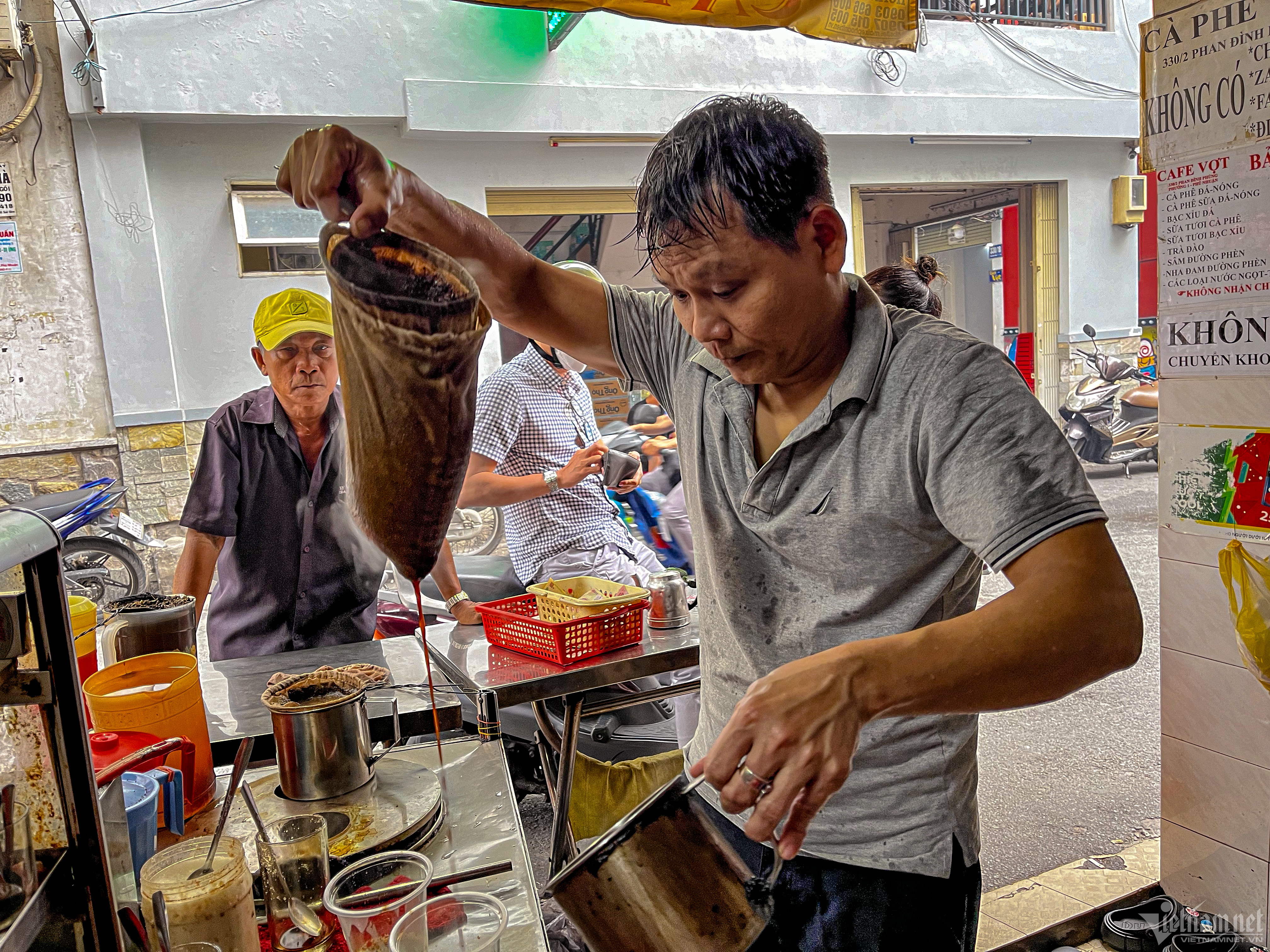 Và rồi ông thêm đường, sữa đặc hoặc sữa tươi, cùng một ít đá đập nhuyễn hay có thể để nóng tuỳ ý khách. Đó là cách để cho ra đời một ly cà phê đậm đà, thơm lừng, đúng chất cà phê vợt của người Sài Gòn xưa.