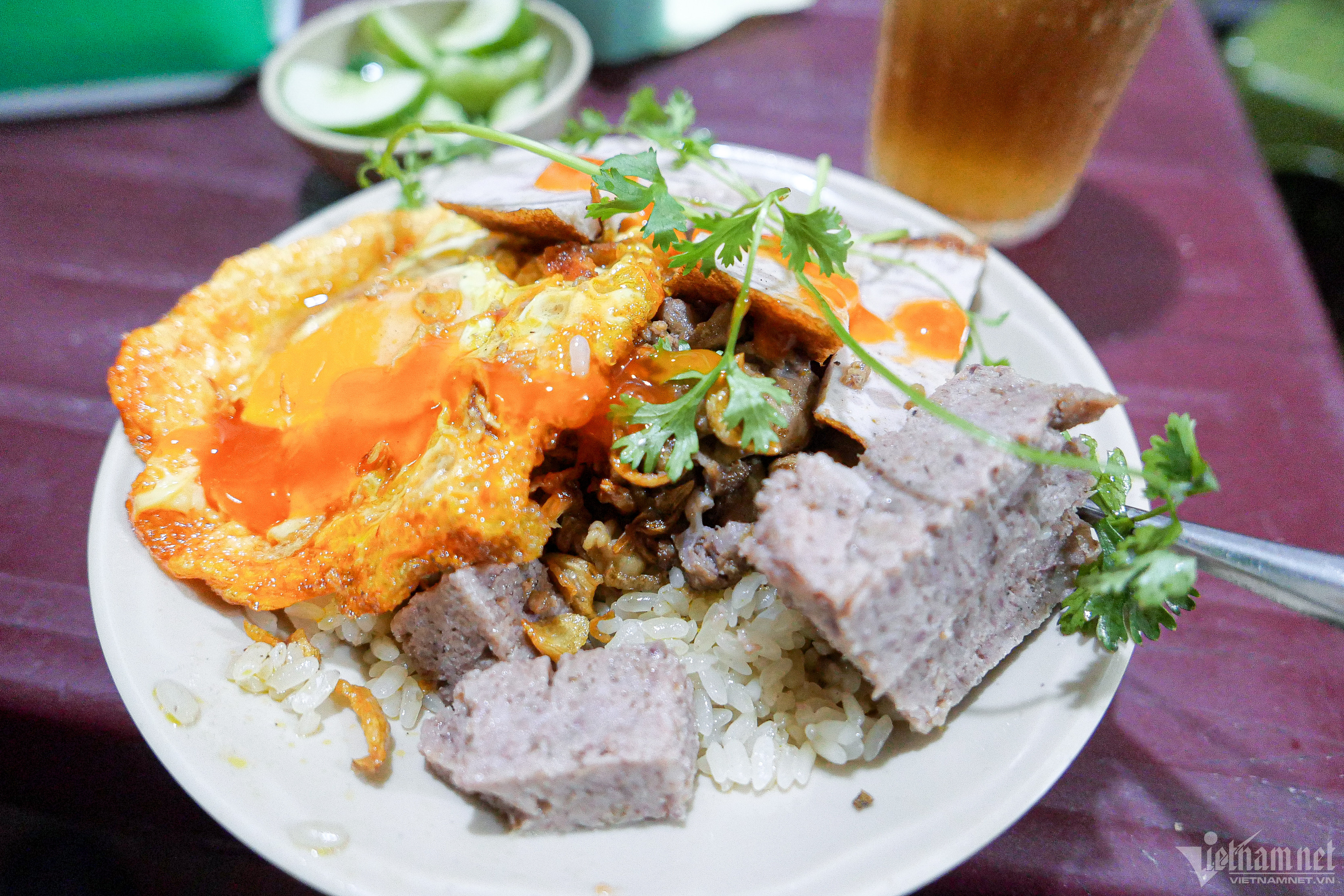 Theo chủ quán, ông không ướp thịt bằng nước mắm vì át hương vị của các nguyên liệu khác. Giá mỗi bát xôi thịt má đào là 35.000 đồng.