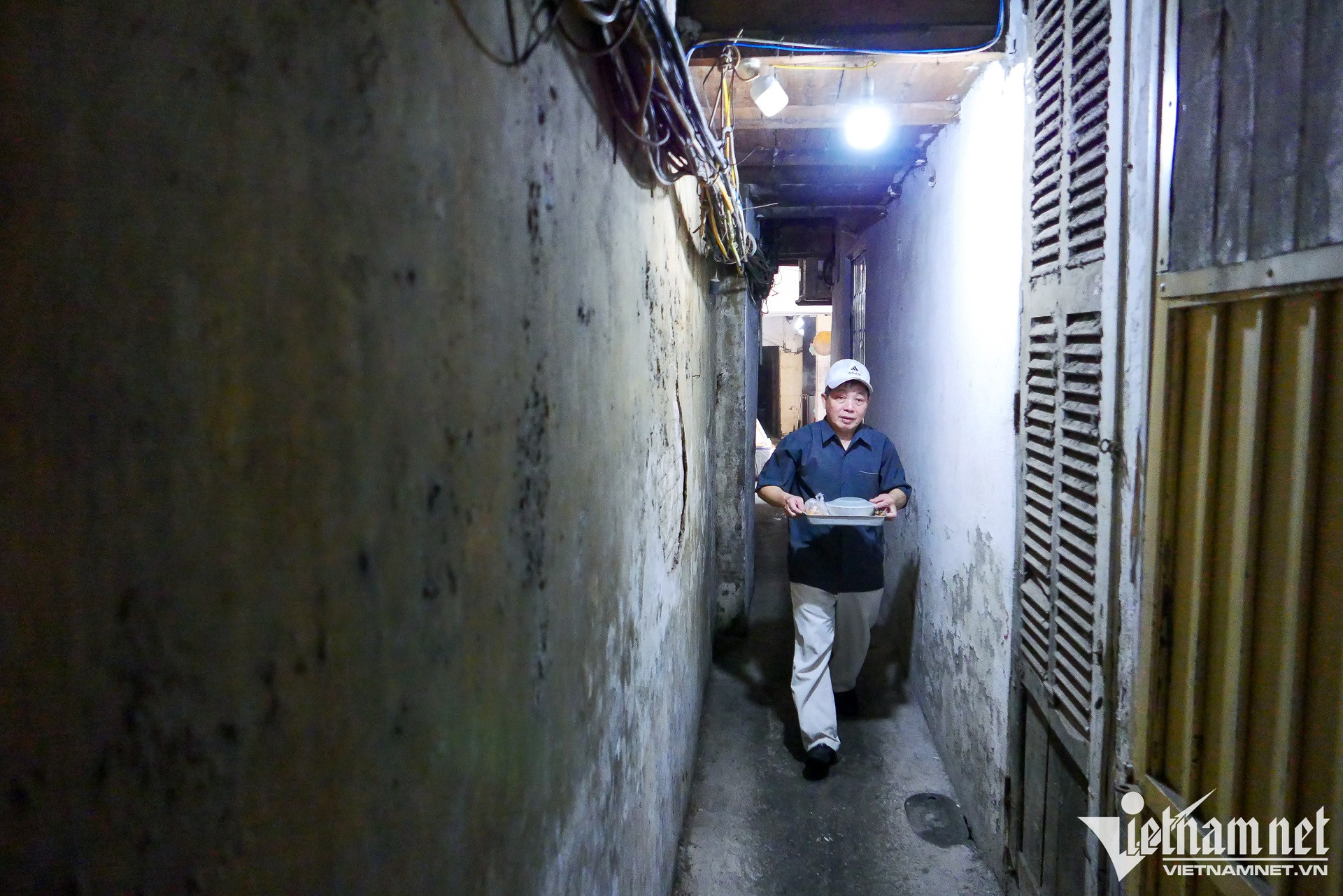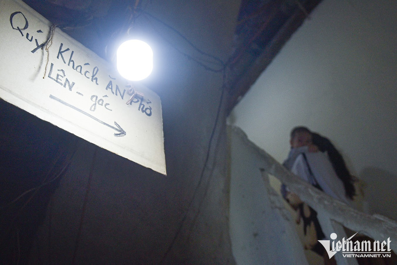 Để tìm đến quán phở nổi tiếng một thời, thực khách phải đi vào một con hẻm nhỏ, chỉ vừa đủ 2 người tránh nhau, sâu chừng 6-7m. Sau đó, đi theo bảng chỉ dẫn lên tầng hai, qua một cầu thang xoắn ốc cũ kĩ.
