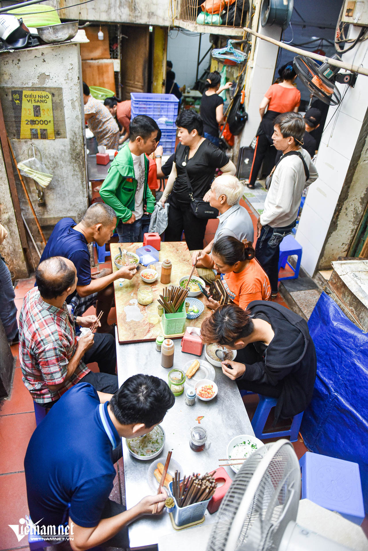 Quán có địa điểm bán hàng rộng rãi. Bên trong nhà đặt 10 bàn, sức chứa khoảng 40 khách. Ngay cửa quán đặt thêm dãy bàn nhỏ, phục vụ được 15-20 khách. Thế nhưng, giờ cao điểm, đặc biệt là cuối tuần, khách vẫn phải xếp hàng dài chờ đợi. Cũng vì thế, nhiều người gọi đây là quán phở “thời bao cấp”.