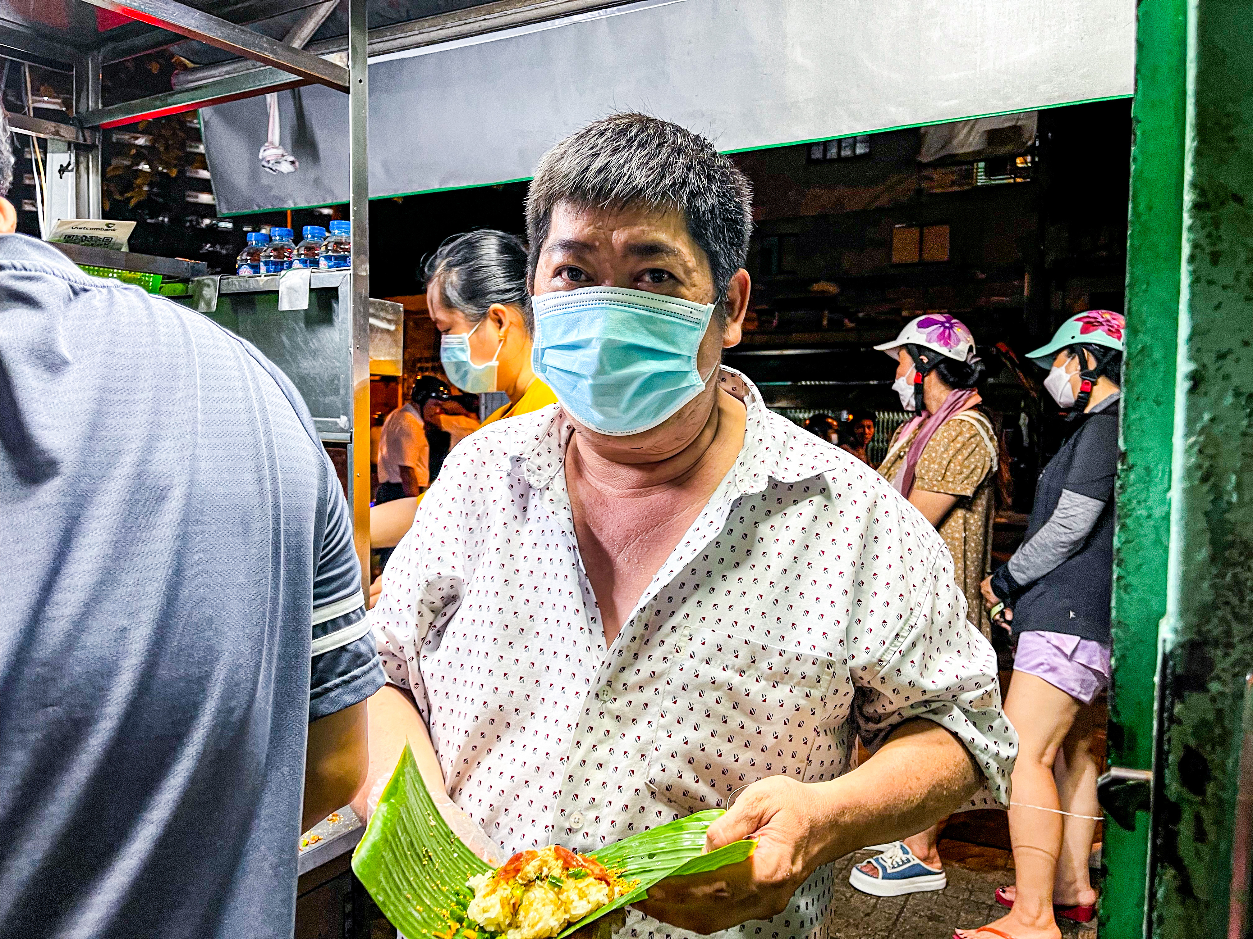 Chủ nhân của xe xôi này là anh Lưu Bảo Minh (49 tuổi, TP.HCM). Anh Minh nối nghiệp mẹ, giữ truyền thống bán xôi hơn 40 năm của gia đình.