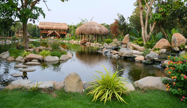 Một trong những dự án nổi bật nhất mà cặp đôi này đầu tư chắc chắn phải kể đến khu nghỉ dưỡng sinh thái rộng lớn tại tỉnh Tiền Giang. Với diện tích lên đến 50.000m2, nơi đây được du khách tìm đến để tránh xa cuộc sống hối hả thành thị, tận hưởng không gian xanh mát và yên bình của miền quê.