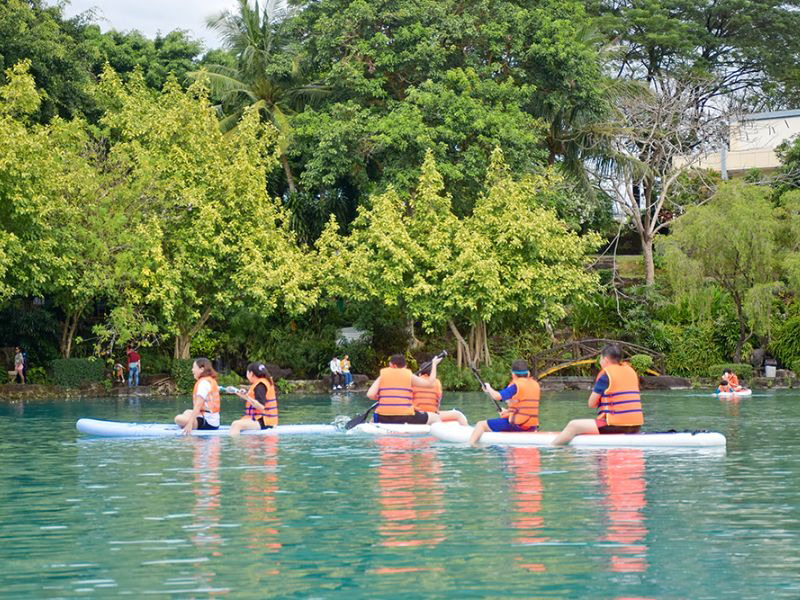 Ngoài tắm hồ ra bạn có thể thử nghiệm cảm giác chèo sup tại đây. Thử tượng tượng không khí mát mẻ, dòng nước trong xanh, phẳng lặng, hai bên là cảnh vật vô cùng bình yên sẽ mang đến cho bạn giây phút thư giản cực kì hiệu quả.