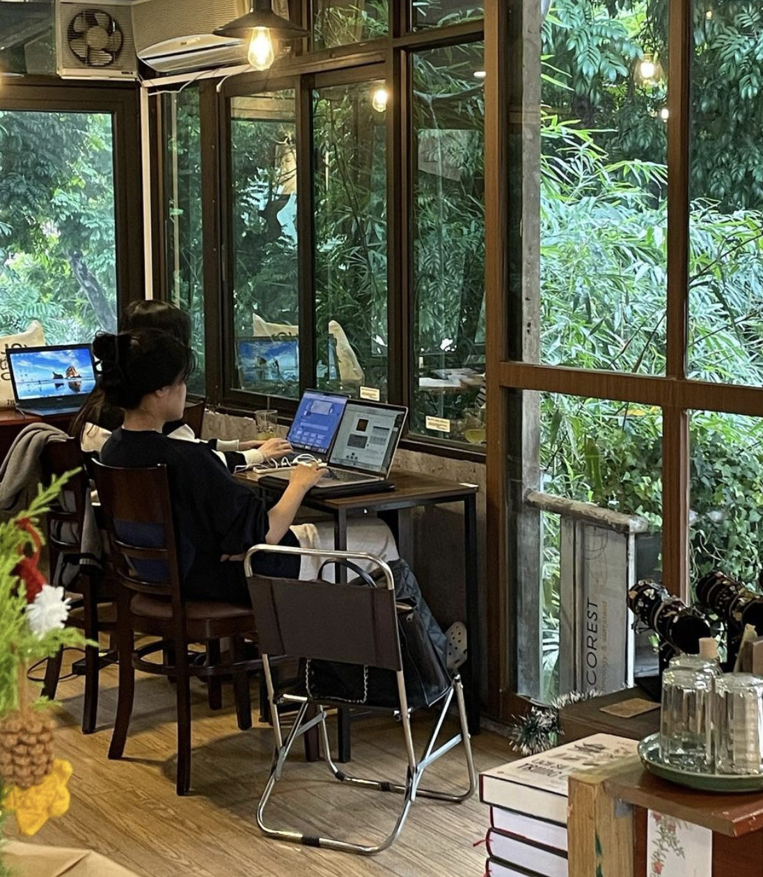 Cảm giác mọi người xung quanh cùng học tập, làm việc giống như mình giúp mọi người cảm thấy tập trung và hoàn thành công việc sớm. Bởi không phải ai cũng có không gian riêng phù hợp với nhu cầu nên những quán cà phê dần trở thành "công xưởng chạy deadline" của học sinh, sinh viên đến người đi làm.