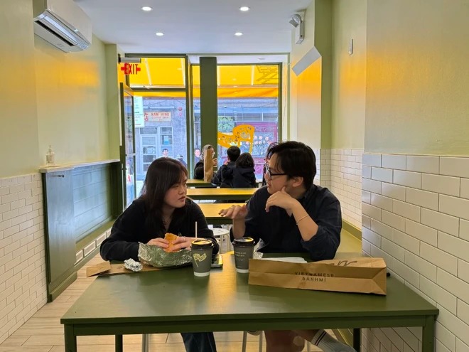 Trần Lê Ngũ Phúc An Khang, sinh viên năm thứ nhất tại New York, cho biết bạn khá bất ngờ khi thưởng thức bánh mỳ "The Hanoian" của Tèn ten.