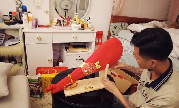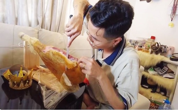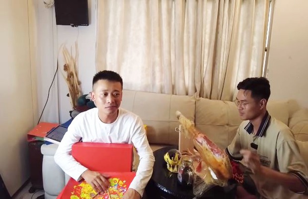 Đó là Tiến Tuti, bạn thân và trợ lý của Quang Linh Vlog tại Quang Linh farm. Thấy Quang Linh mê mệt ngắm nghía mấy cái đùi heo muối trên mạng, anh chàng đã bí mật đi xếp hàng 2 tiếng ở cửa hàng thực phẩm, mua về cho cậu em thưởng thức.