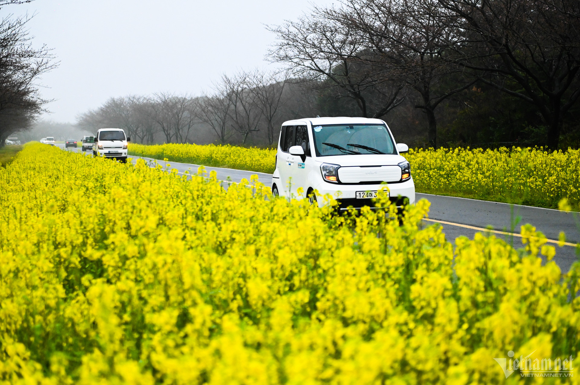Khoảng cuối tháng 3, đầu tháng 4 là thời điểm giao thoa giữa mùa xuân - mùa hè, thời tiết ở Jeju luôn thay đổi thất thường. Trong khung cảnh của một thành phố vừa hiện đại mà vẫn đậm chất thơ, những ngày mưa nhiệt độ xuống thấp, kèm gió lớn từ biển thổi vào khiến nhiều người ra đường diện trang phục kín mít.