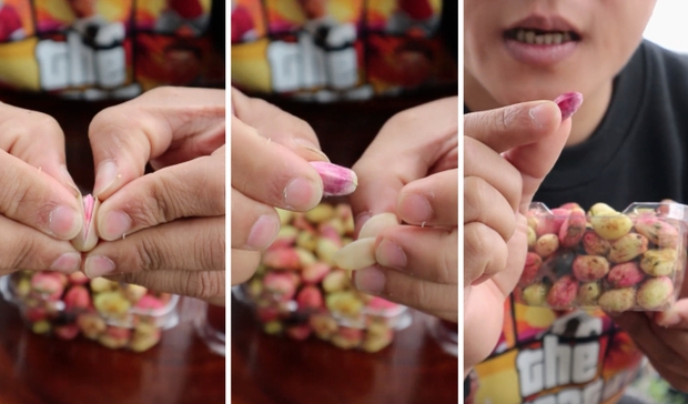 - Bữa nay anh review hạt dẻ cười tươi, hôm nào anh review hạt dẻ cười sái quai hàm đi ạ.