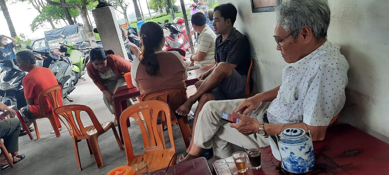 Buổi sáng, bên góc chợ cổ nhìn ra sông, quán cà phê vợt trông bên ngoài không khác nhiều so với những quán cà phê khác. Không có bảng hiệu, bàn ghế đơn sơ, khách ngồi lẫn trong người qua kẻ lại ở khu chợ. Chủ quán cho biết bắt đầu bán cà phê từ năm 23 tuổi.