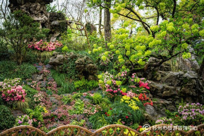 Chuyết Chính Viên đang tổ chức triển lãm hoa đỗ quyên, tuy mộc tú cầu không phải là nhân vật chính trong khu vườn này nhưng nếu thiếu đi thì lại mất cái chất thơ lãng mạn.