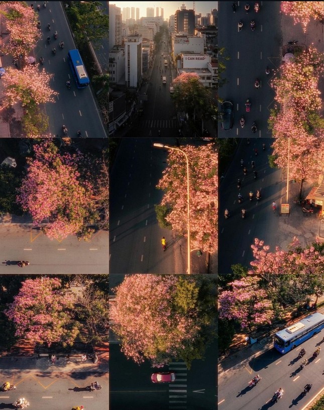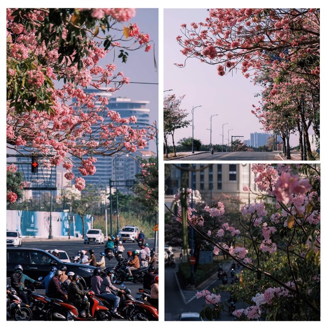 Những ngày qua, các tuyến đường như đại lộ Võ Văn Kiệt, đường Điện Biên Phủ (Quận Bình Thạnh), đường Hàm Nghi (Quận 1), đường Tố Hữu (Quận 2), khu đô thị Sala ở TP.HCM bỗng trở nên thơ mộng, đẹp đến xiêu lòng khi được phủ kín cả một góc trời bởi hoa kèn hồng.