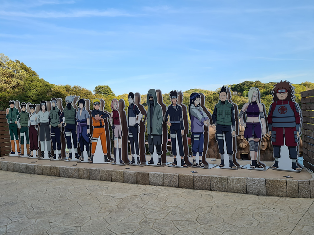 Tại công viên còn có vô số tượng nhân vật đủ kích cỡ lớn nhỏ được điêu khắc tinh tế y như thật. Đặc biệt hoành tráng có thể kể đến Cửu Vỹ, Akatsuki, tảng đá Hokage, nơi các lãnh đạo Làng Lá được tạc tượng...