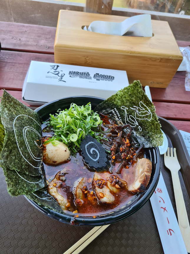 Bên cạnh những hoạt động tham quan và check-in, du khách không thể bỏ qua trải nghiệm ẩm thực trên cả tuyệt vời khi ghé đến công viên. Khách tham quan sẽ có cơ hội được thưởng thức một bát mì Ramen nóng hổi, cũng là món ăn mà Naruto yêu thích nhất theo phong cách của các Ninja tại đây.