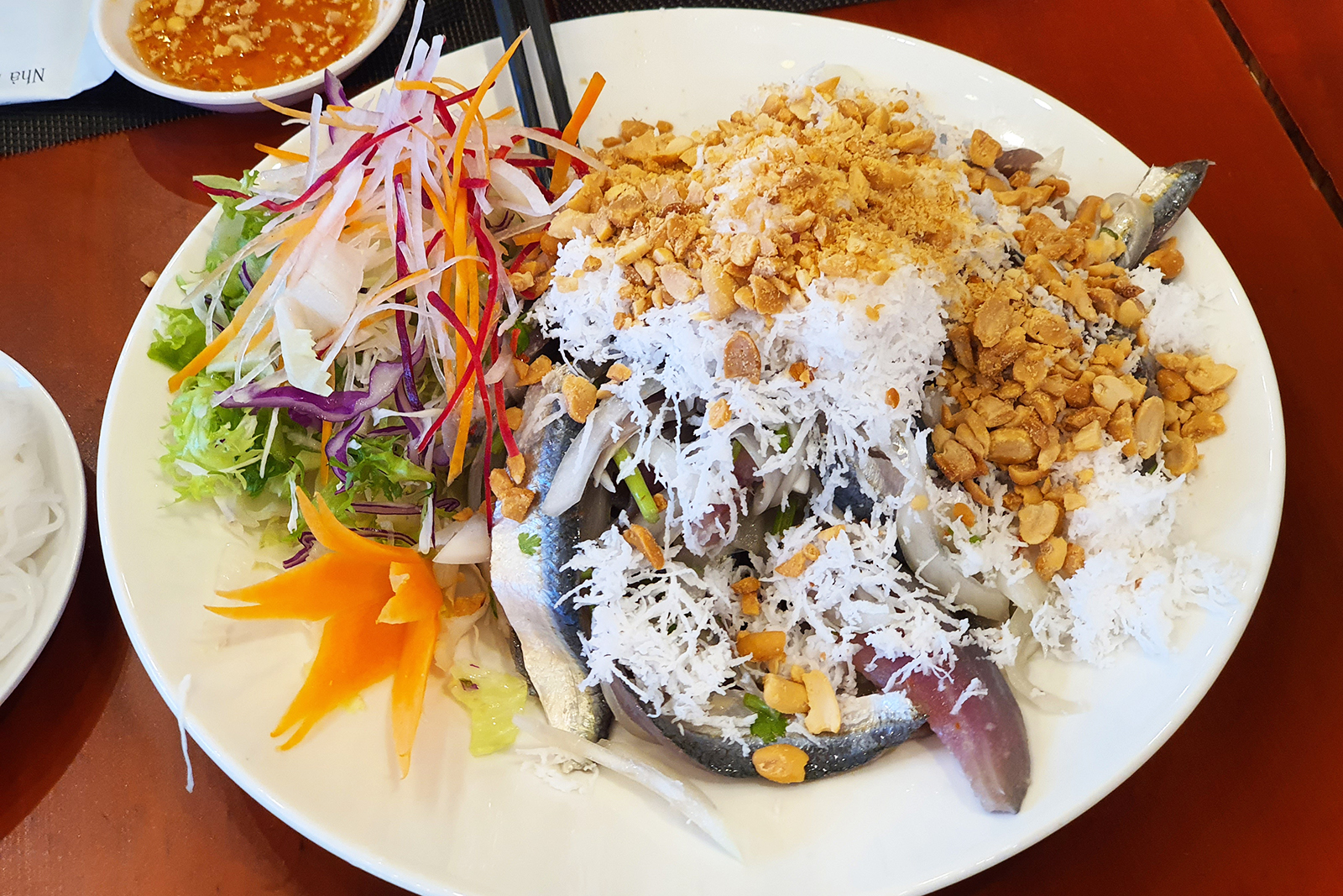 Nếu nhắc đến món ngon Phú Quốc mà bỏ qua gỏi cá trích thì thật là một thiếu sót lớn! Cá làm gỏi phải thật tươi để giữ thịt ngọt, không tanh. Cá được làm kỹ và lóc bỏ xương, lấy phần thịt hai bên; kết hợp thêm các loại nguyên liệu đơn giản như hành tím, dừa nạo, đậu phộng rang,... là đã đủ để mang đến một món ăn đậm đà hương vị biển cả, khiến du khách nhớ mãi không quên.
