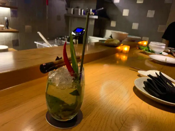 Ngay khi đặt chân tới nhà hàng, du khách Mỹ đã vô cùng bất ngờ khi được nhân viên phục vụ đặt trước mặt một ly "“phởjito” – một loại mojito được pha cùng các loại thảo mộc và gia vị như một tô phở. Zukas sau đó mới biết rằng mức giá 100 USD kia là dành cho hai người, bao gồm hai "phởjitos", hai quả cầu phở phân tử, hai miếng bánh mì Việt Nam cũng như một tô phở để cùng thưởng thức.