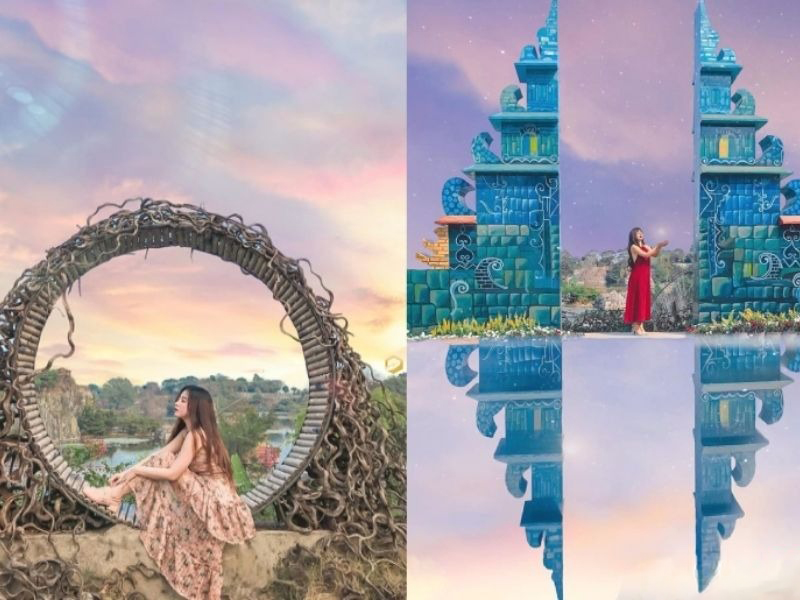 Khi đến đây, bạn có thể thoải mái check-in các tiểu cảnh như: Cổng trời Ba-li, Nấc thang lên thiên đường, Xích đu tiên, Dòng suối xanh mát, thác nước