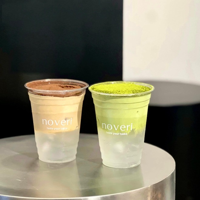 Hình thức: Sự tương phản của lớp kem matcha và nước dừa phía dưới rất thú vị