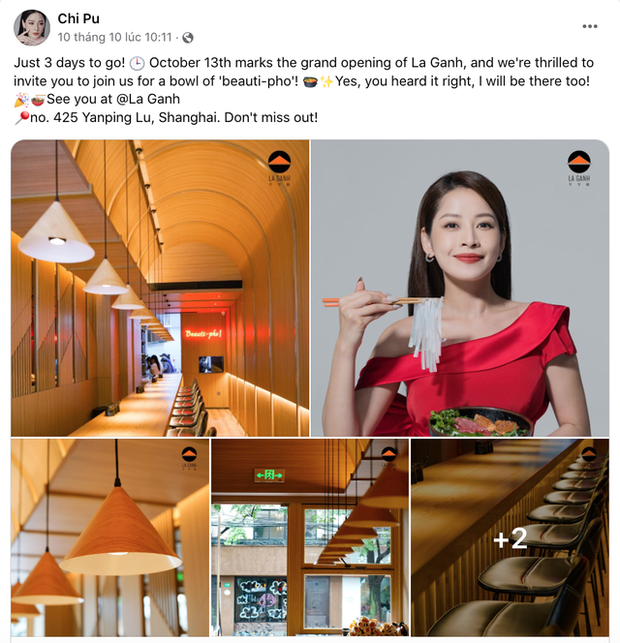 Vừa tham gia concert Rap Việt tại Việt Nam mới đây, rất nhanh chóng, Chi Pu đã di chuyển đến Trung Quốc để chuẩn bị cho ngày khai trương quán phở. Theo đúng như lịch trình mà fanpage của quán thông báo thì ngày mai (13/10/2023), quán phở La Ganh của Chi Pu sẽ chính thức khai trương. Tuy nhiên, ngay trước khi khai trương 1 ngày, quán đã đón những người bạn đến chúc mừng.