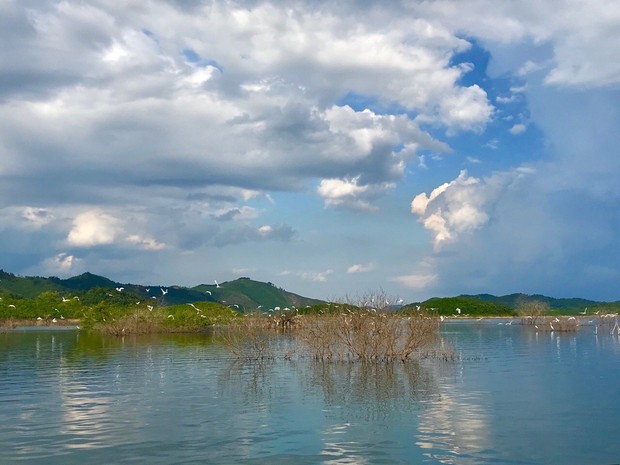 Những khe suối, dòng nước xanh ở lòng hồ tạo nên phong cảnh sơn thủy hữu tình khiến nhiều người mê mẩn.