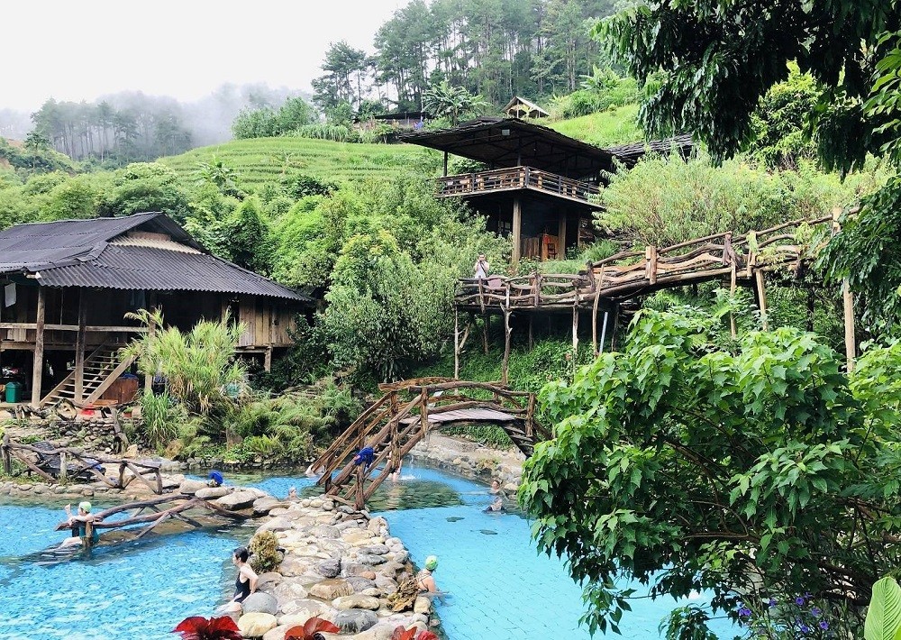 Suối khoáng Trạm Tấu Tây Bắc được thiên nhiên ưu đãi nguồn nước khoáng nóng tự nhiên phun lên từ lòng đất.