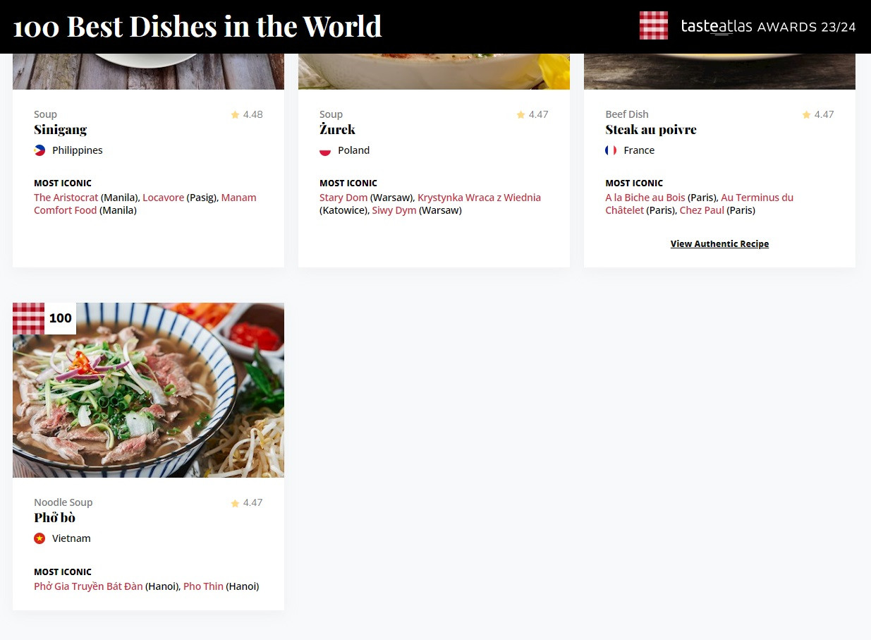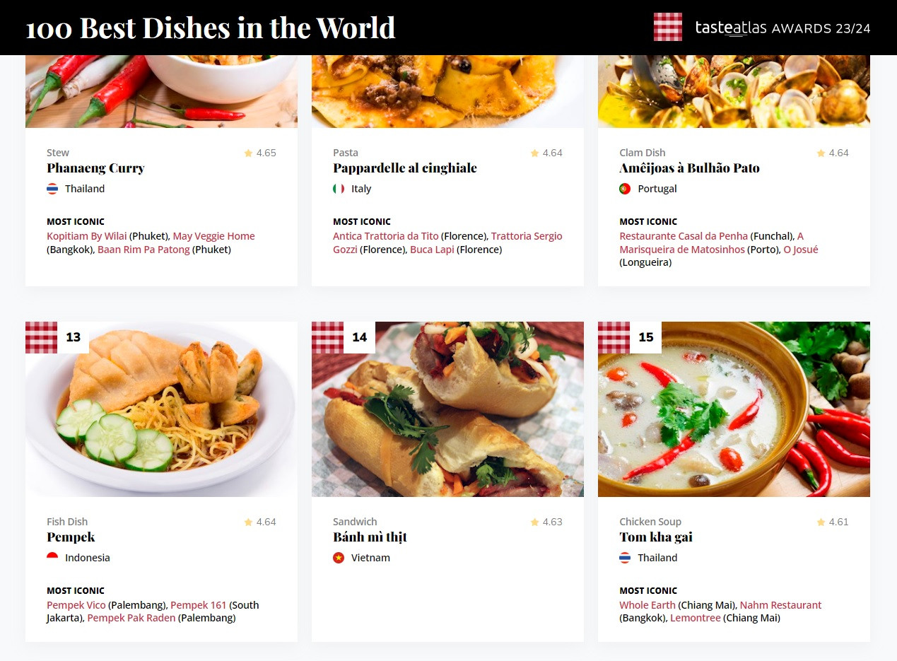Nằm trong khuôn khổ giải thưởng danh tiếng 'TasteAtlas 23/24', nền ẩm thực của Việt Nam cùng hàng loạt món ăn, điểm đến, cửa hàng của nước ta đã được các chuyên gia ẩm thực, đầu bếp và khách quốc tế đánh giá cao.