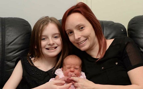 Caitlin Burke cùng mẹ và em gái vừa chào đời. Ảnh: Telegraph. |