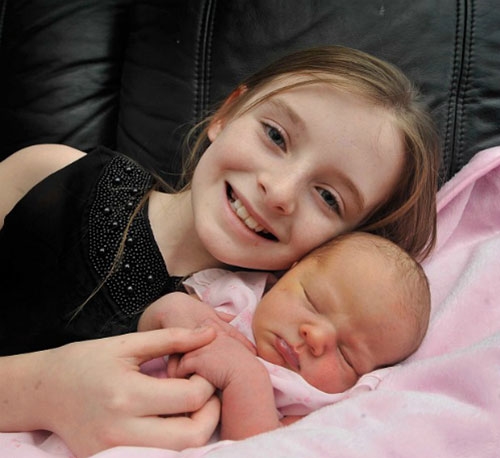Nhờ đỡ đẻ, cô bé 11 tuổi cảm thấy yêu em gái hơn rất nhiều. Ảnh: Telegraph. |