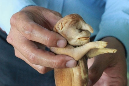 Con chó con vì sinh ra có hình dáng kỳ lạ với cái vòi voi, miệng khỉ còn đôi tai như tai dơi nên bị chó mẹ cắn chết khi mới ra đời.