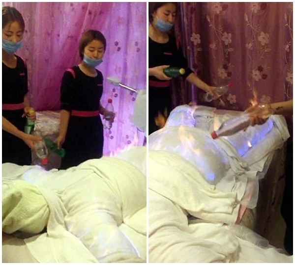 Chủ tiệm thẩm mỹ khẳng định phương pháp trên giúp “điều chỉnh cơ thể” và “có tác dụng trong việc giảm cân”. Bà này tuyên bố cách đốt mỡ bằng lửa có thể giúp một khách hàng giảm 20kg trong hai tháng.