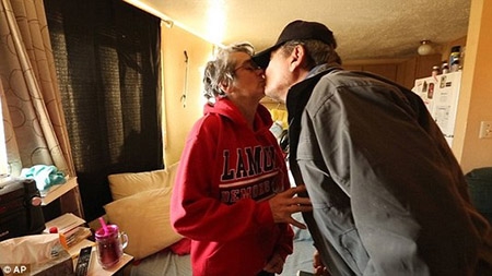 Ông Simoff hôn vợ Renee. Ảnh: AP |