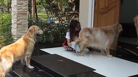Đoạn video được quay tại Thái Lan cho thấy hình ảnh những chú chó rất biết nghe lời khi xếp hàng ngay ngắn để chờ được rửa chân sạch sẽ trước khi bước vào nhà đang thu hút sự chú ý của nhiều người dùng mạng.