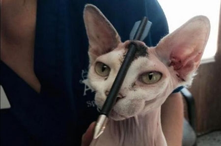 Một người phụ nữ ở bang Florida, Mỹ sửng sốt khi thấy mũi tên xuyên qua đầu con mèo của cô, nhưng nó không chết.