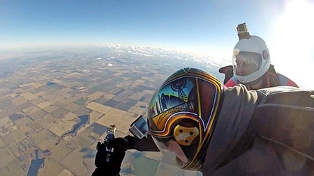 Khoảnh khắc cả 2 chuẩn bị nhảy xuống máy bay. |