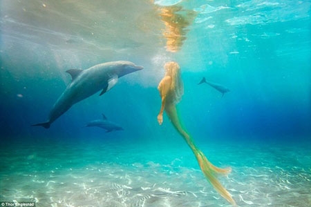 Cô từng đi thám hiểm nhiều vùng biển với chiếc đuôi cá heo tự chế. |