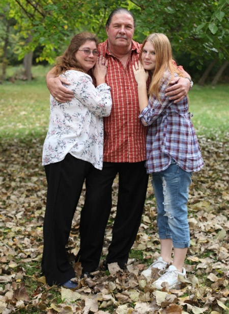 | Ông Miller đứng giữa hai người vợ của mình. Ảnh: Barcroft Media. |