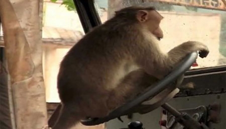 Trong khi tài xế ngủ trưa ở hàng ghế sau, một chú khỉ lẻn vào lái xe buýt rồi gây tai nạn liên hoàn. Sự việc "có một không hai" xảy ra hôm 22/12 tại Bareilly, bang Uttar Pradesh, miền bắc Ấn Độ.
