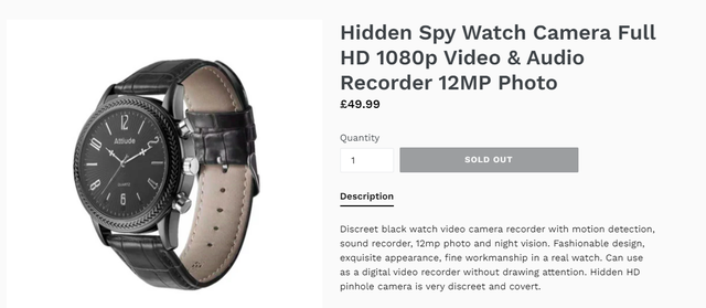 Cụ thể, trên Micronic, chiếc đồng hồ ẩn camera Full HD 1080p, đầu ghi video & âm thanh, ảnh 12MP có giá £49,99 (tương đương 1.615.572 VND, theo tỷ giá hiện tại).